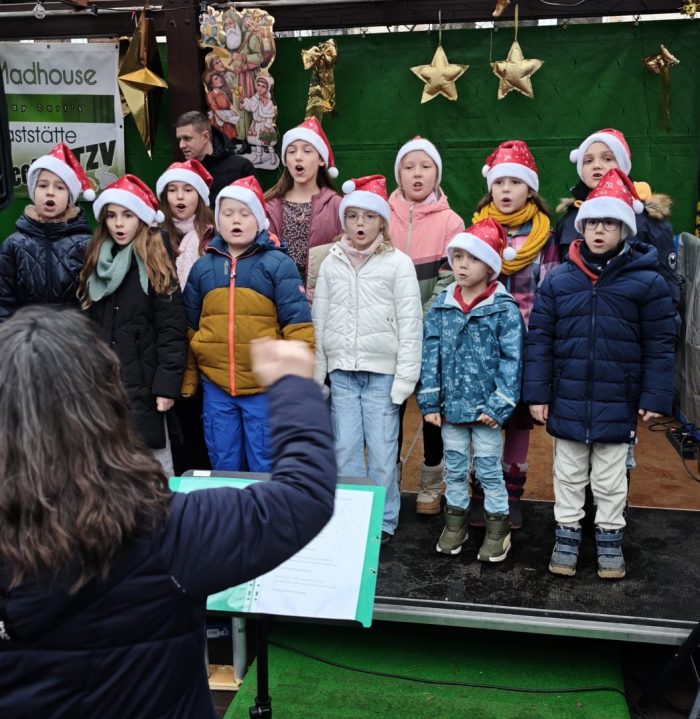 Toller Auftritt des Kinderchors beim Weihnachtsmarkt in Beindersheim.